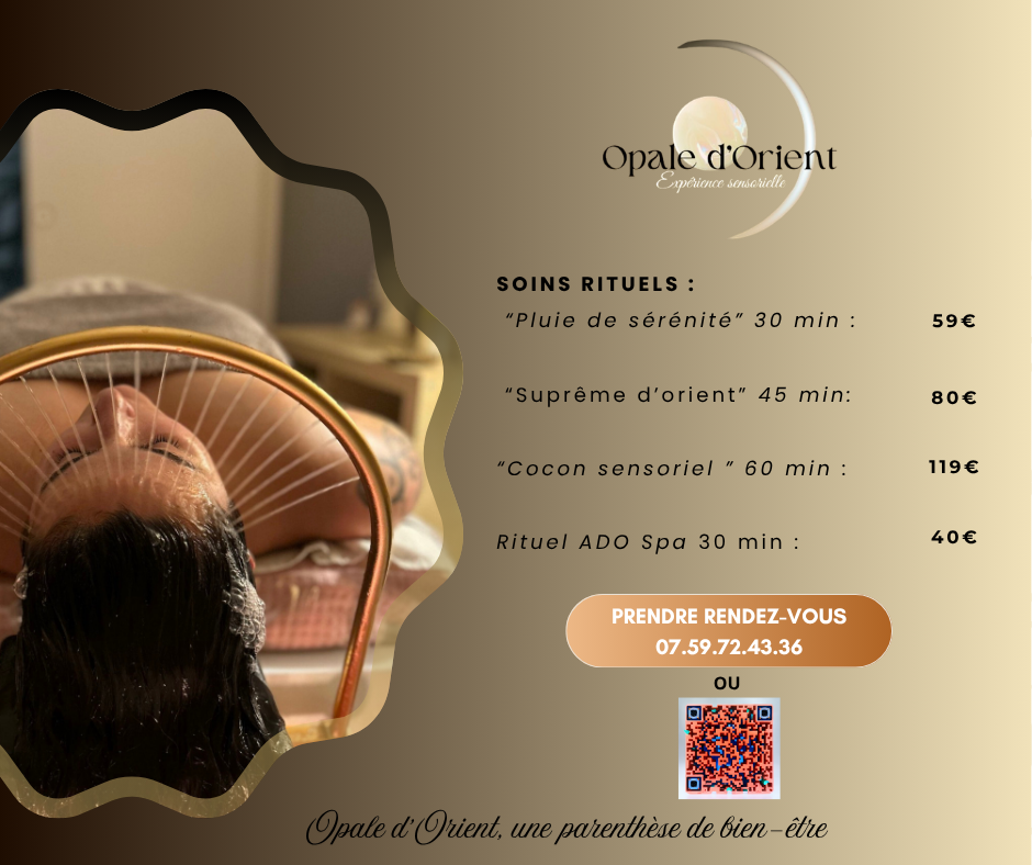 Cette expérience signée Opale d’Orient offre les mêmes bienfaits : massage crânien profond, outils sensoriels, protocole naturel adapté à votre cuir chevelu.